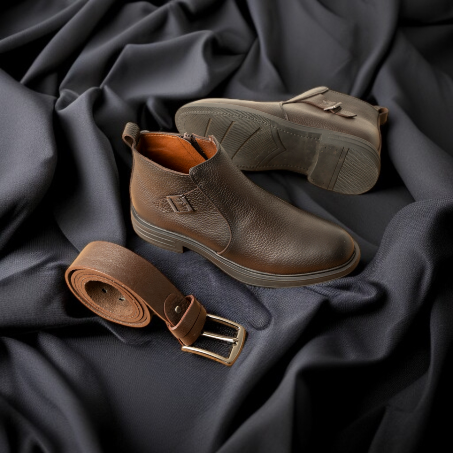 مصنوع بالكامل من جلد طبيعي فاخر، بلمسة فخامة تليق بأي مناسبة.
