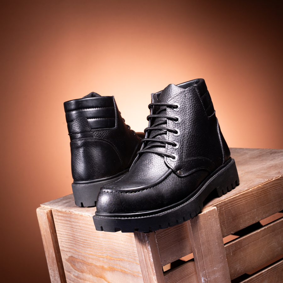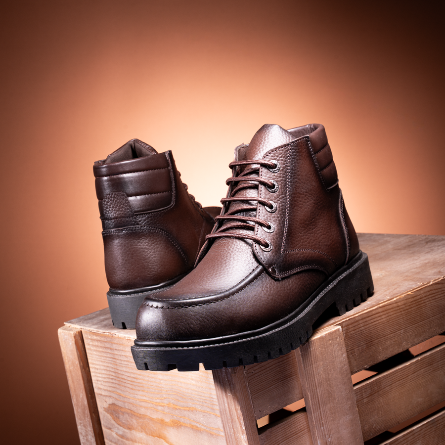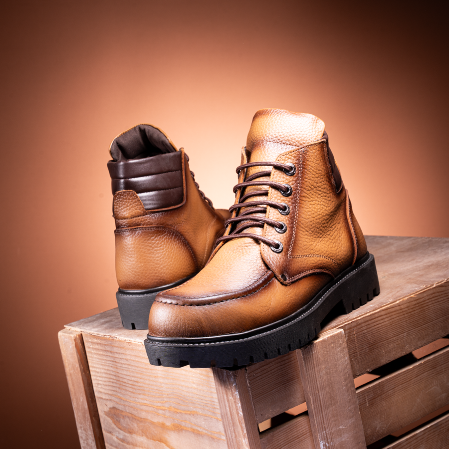 هاف بوت رجالي أنيق يناسب الخروجات والمناسبات، مصنوع من جلد طبيعي بالكامل لضمان الفخامة والمتانة.