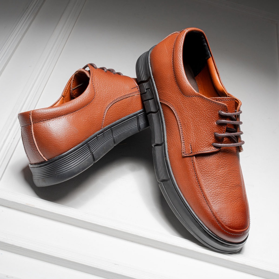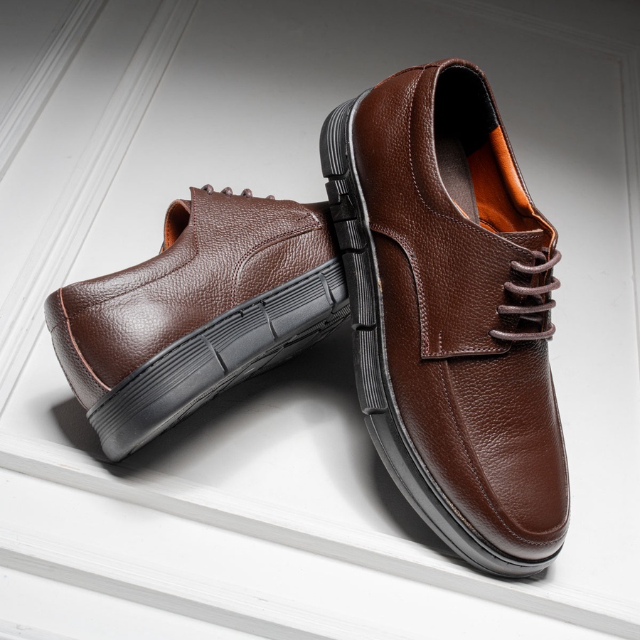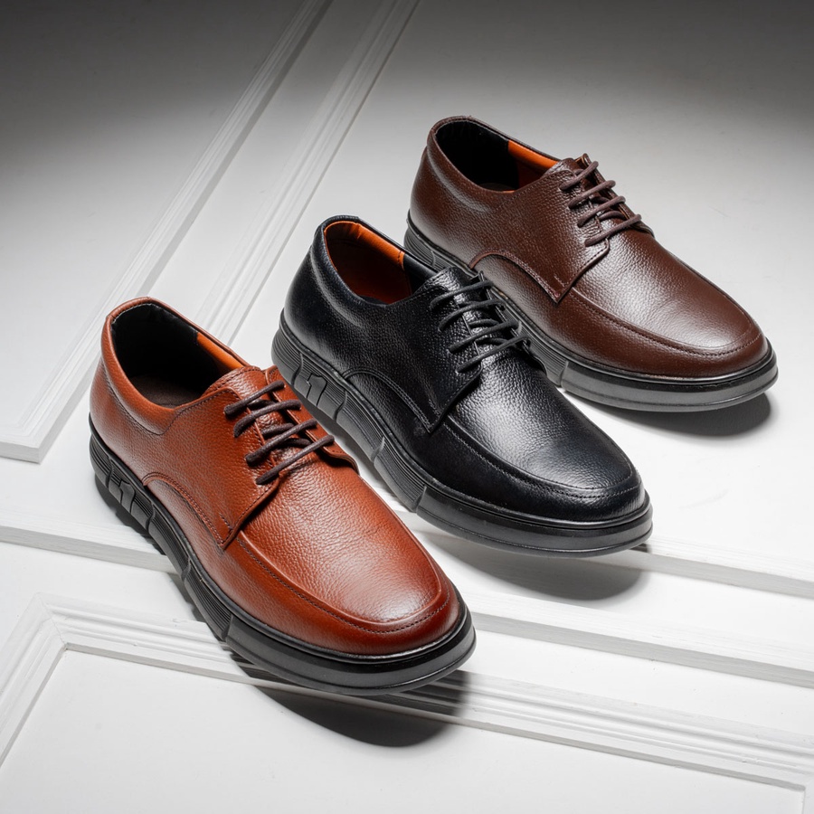 حذاء جلد طبيعي بقري برباط، تصميم أنيق للمناسبات والاجتماعات والعمل الرسمي.