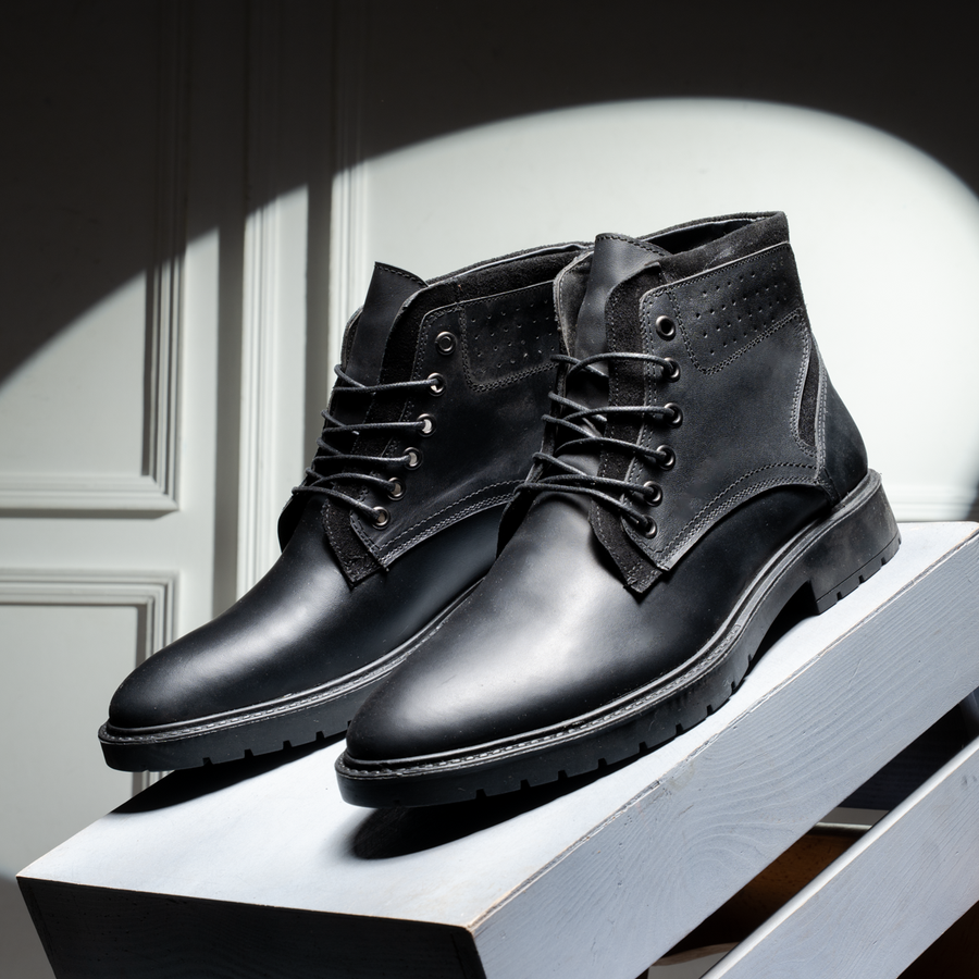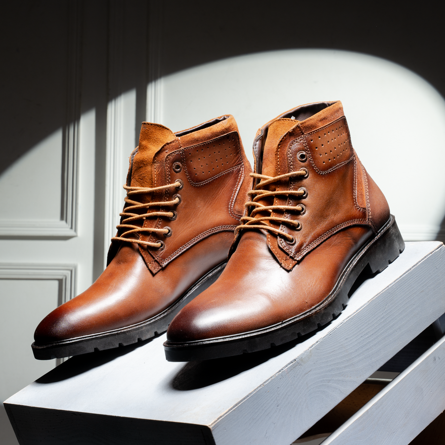 الهاف بوت الجلد الطبيعي هو الخيار الأمثل لكل رجل عايز يكون دايمًا في قمة أناقته. مصنوع من جلد بقري طبيعي من أجود الخامات، هتلاقيه مش بس شكله حلو، لكن كمان هيعيش معاك سنين من غير ما يتأثر. مع تصميم عملي يخليك تقدر تلبسه وتخلعه بسهولة، وكمان سهل التنضيف، هتكون دايمًا في مظهر مشرف.