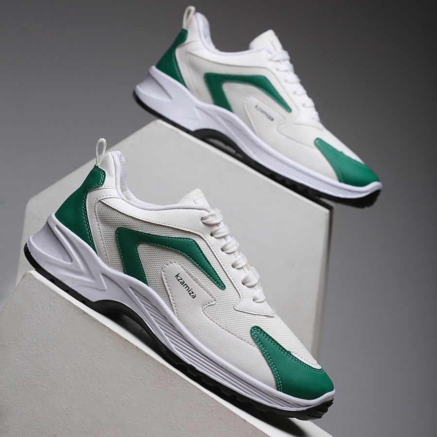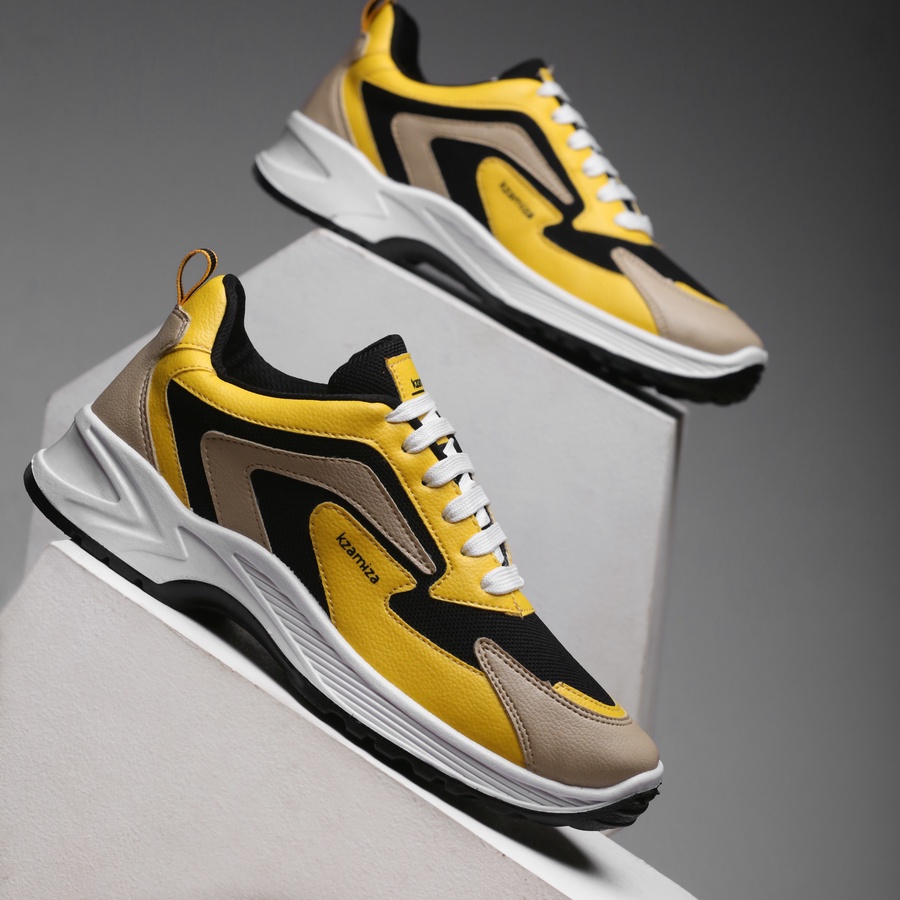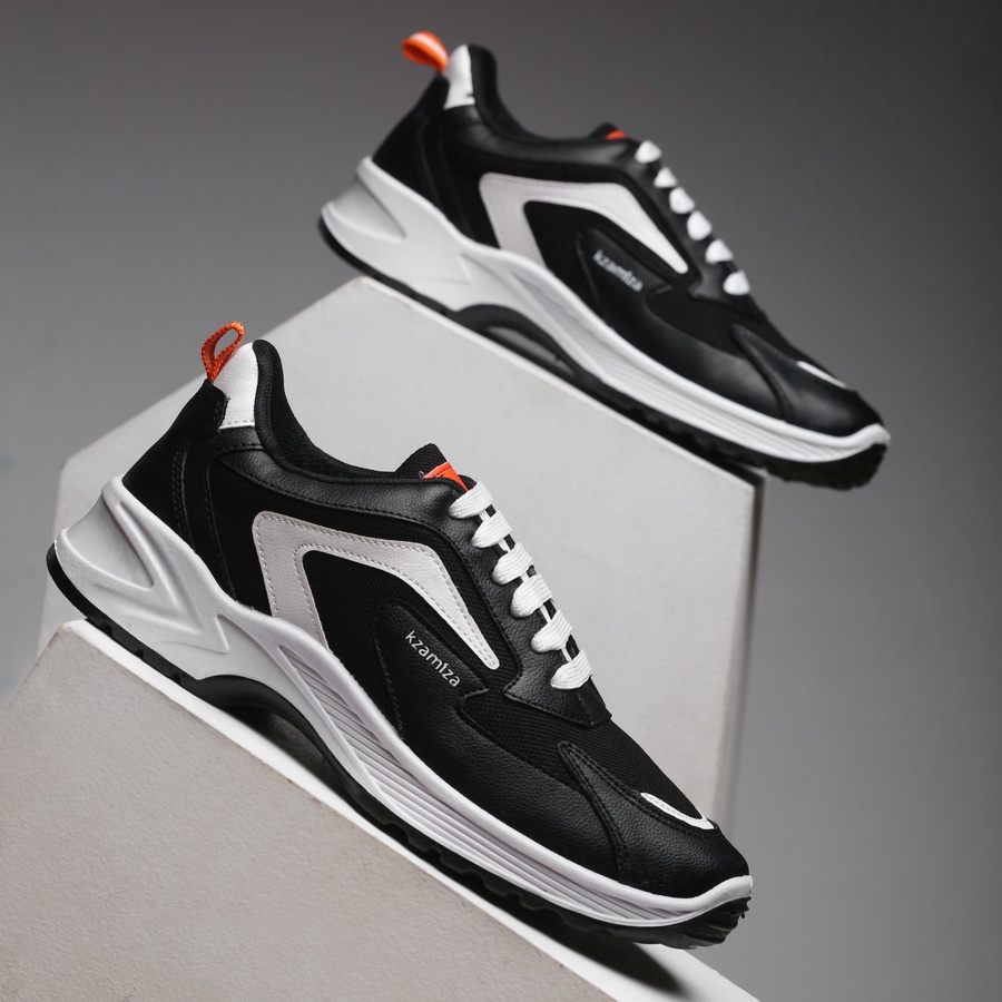 الجزء العلوي مزيج من جلد متين + قماش ناعم لراحة فورية ومظهر أنيق