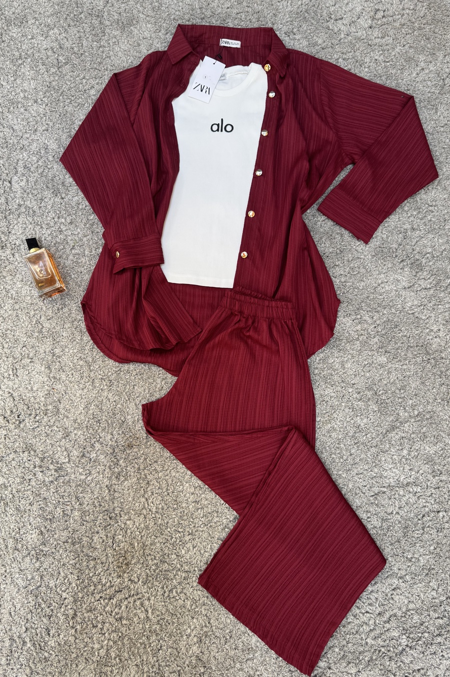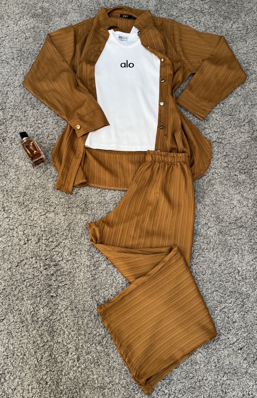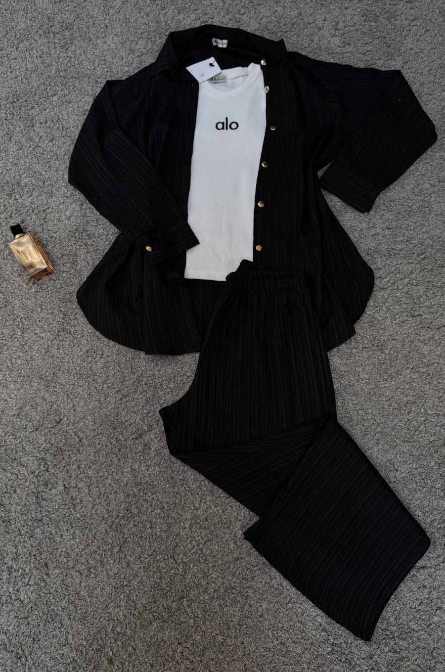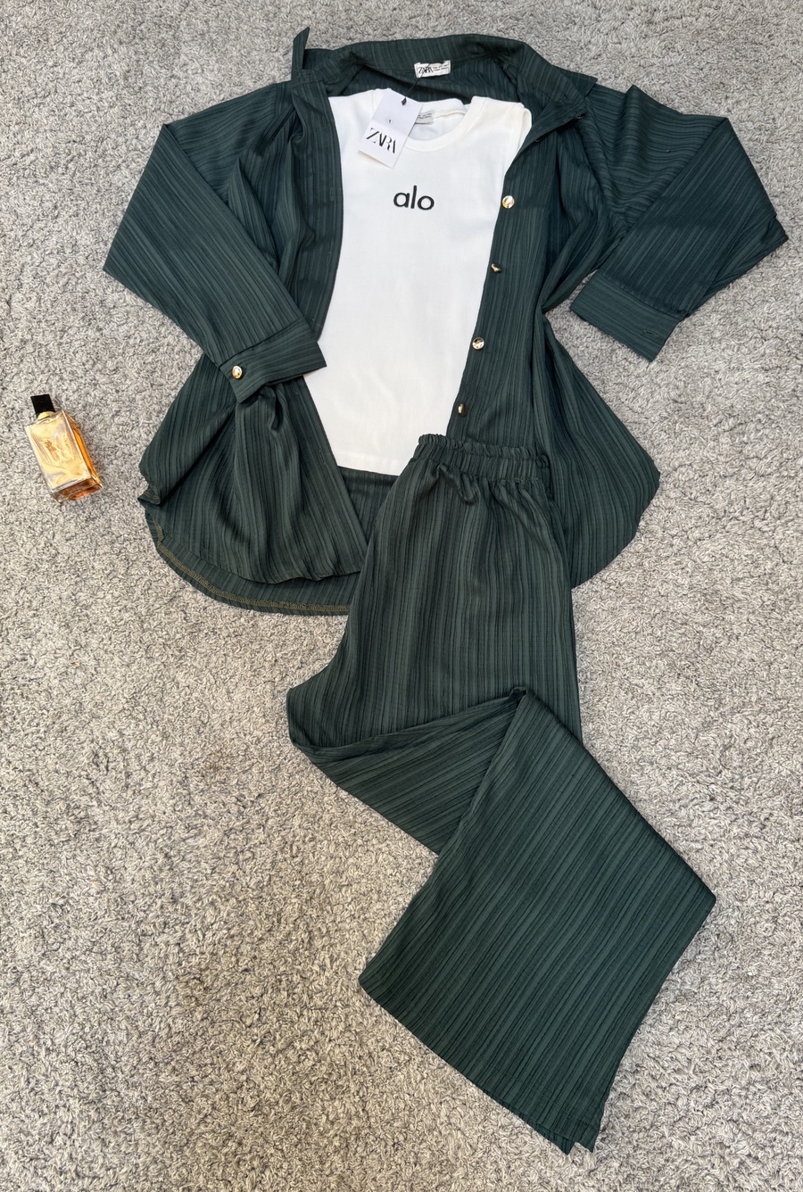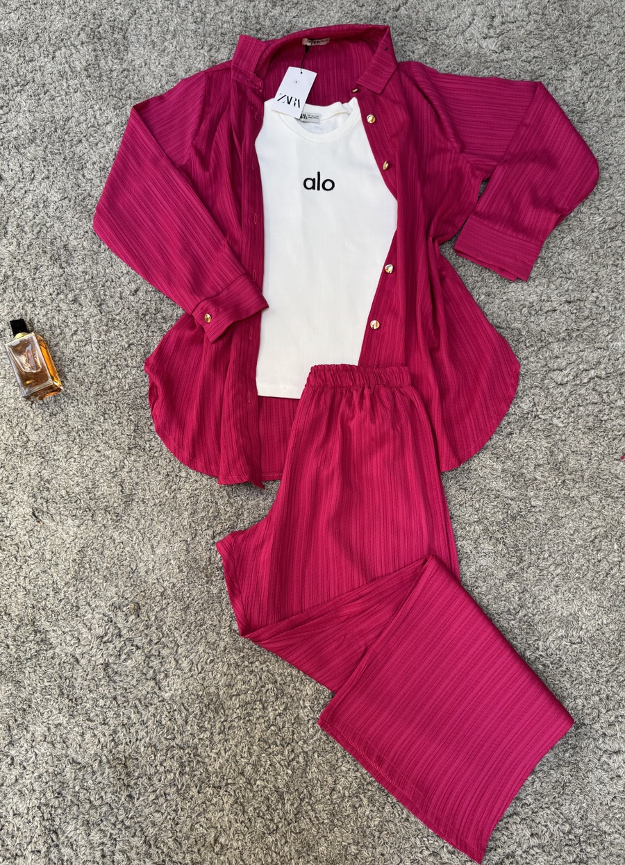 👗 سوت حريمي 3 قطع – بنطلون + شميز + بيزك
