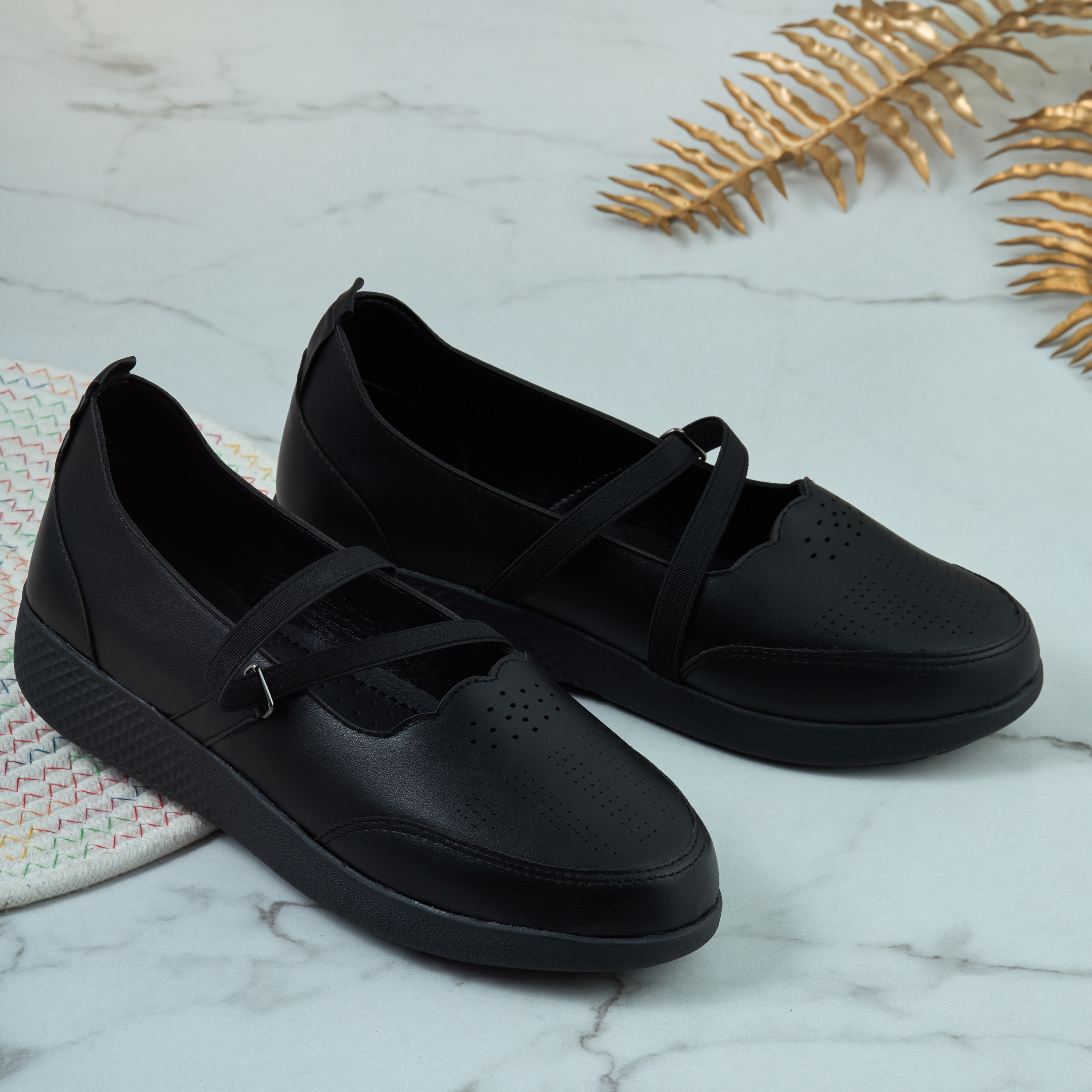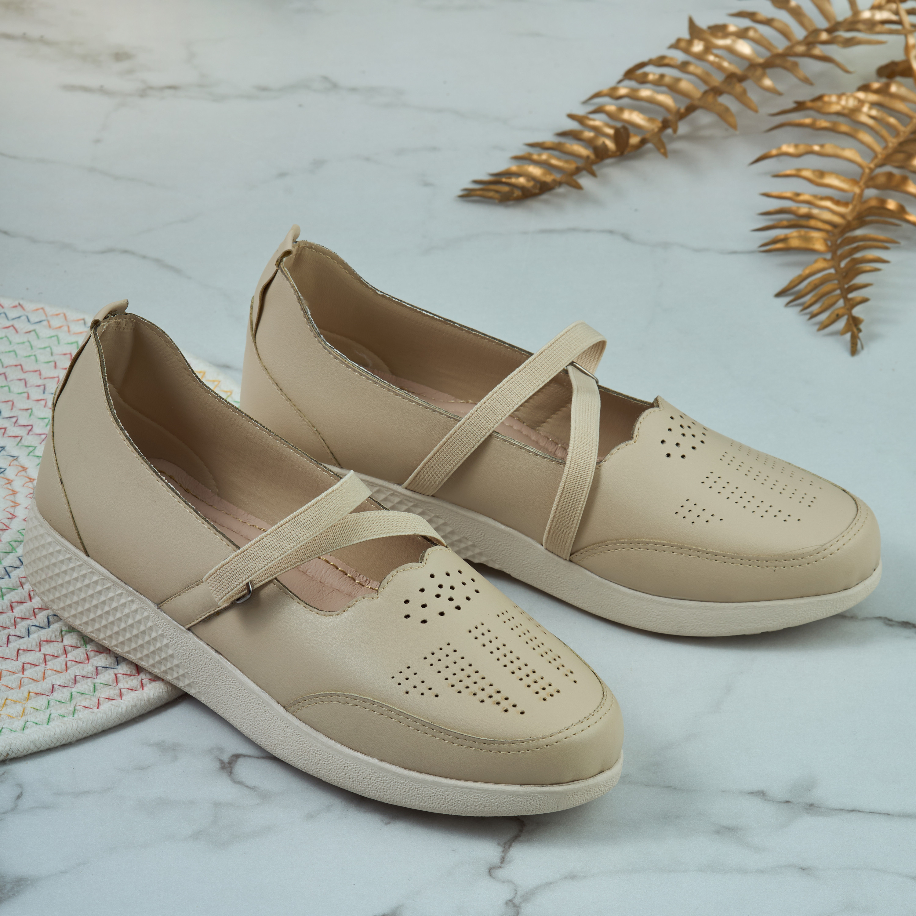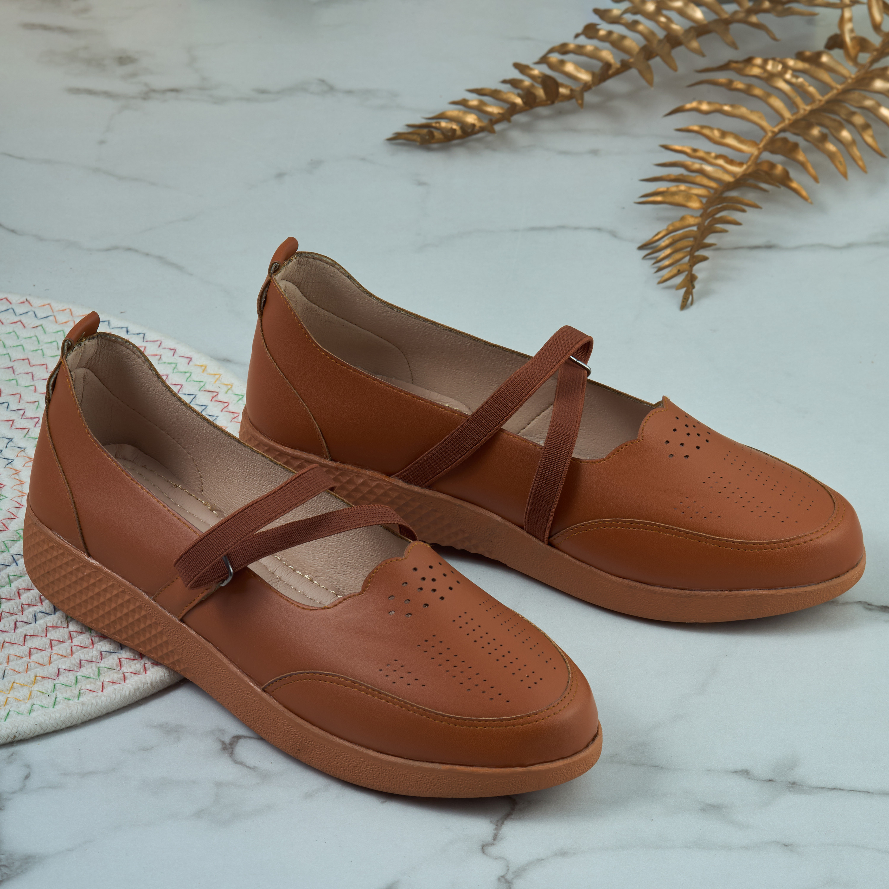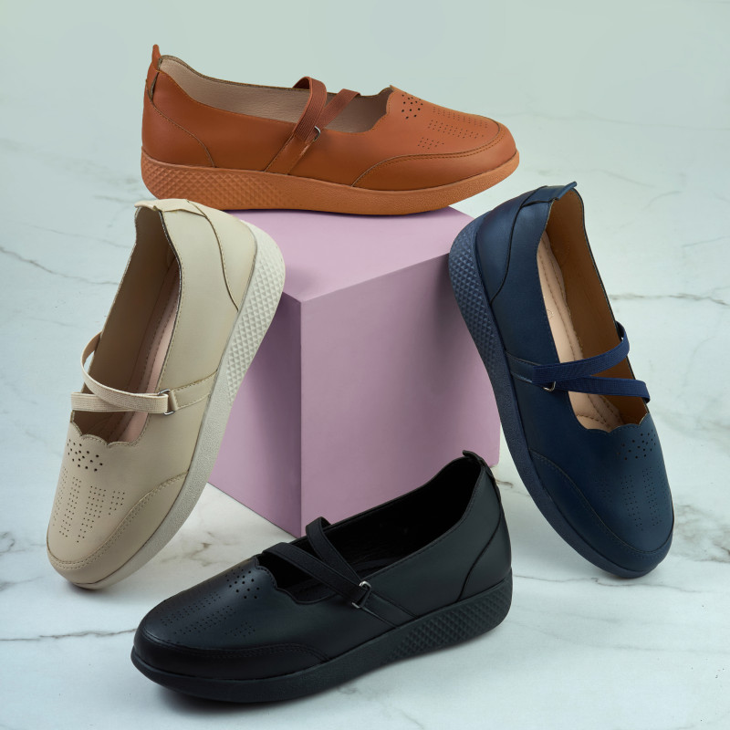 حذاء حريمي بكعب كود 6968، جلد مستورد مرن، مطرز بالليزر، أستك كروس، فرش طبي مريح، كعب 2.5 سم، لصق وكبس، مقاسات 37–41، ألوان: أسود، كحلي، بيج، هافان.